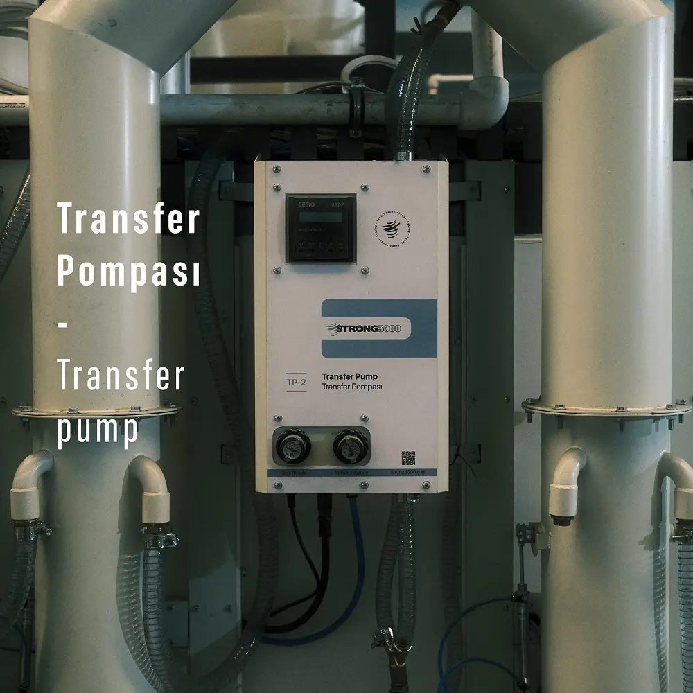 Strong3000 TP2 transfer pompası, endüstriyel kaplama hatlarında kullanılan ve hava körük (air pulse) prensibi ile çalışan, hem toz boya hem de toz emaye transferi yapabilen yüksek verimli bir taşıma sistemidir.